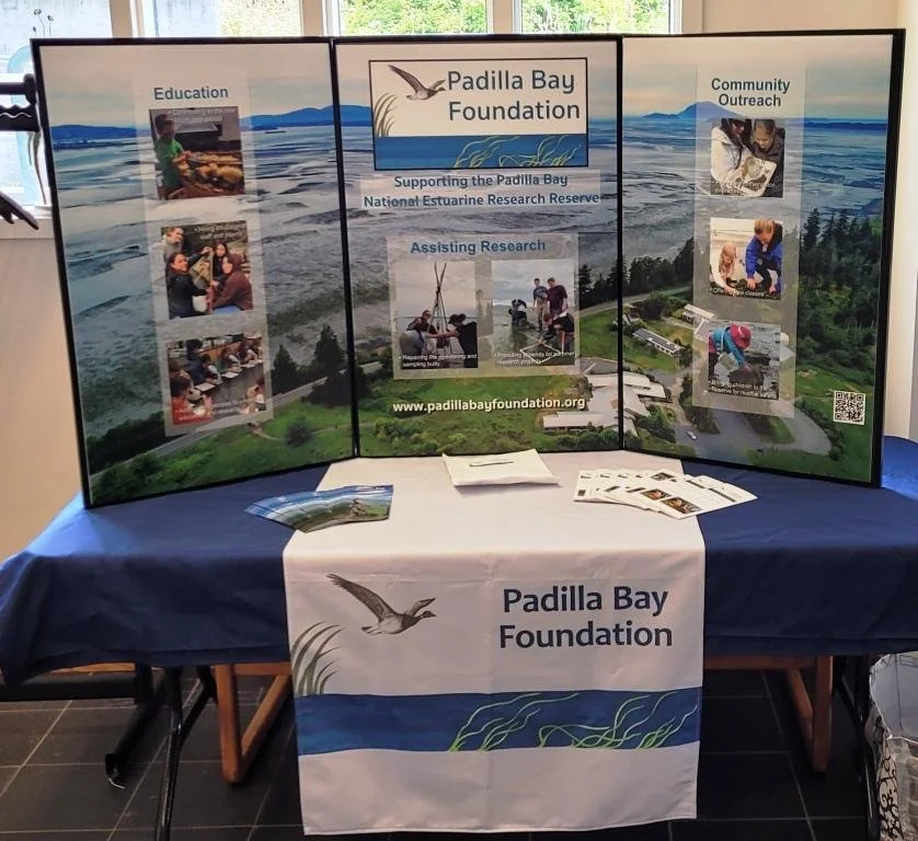 We also “unveiled” the brand new Foundation table display. A lot of work by many folks on the Foundation Board and other volunteers. It well conveys the purpose and value of the Padilla Bay Reserve and Foundation. We plan to be present at many public events with it!